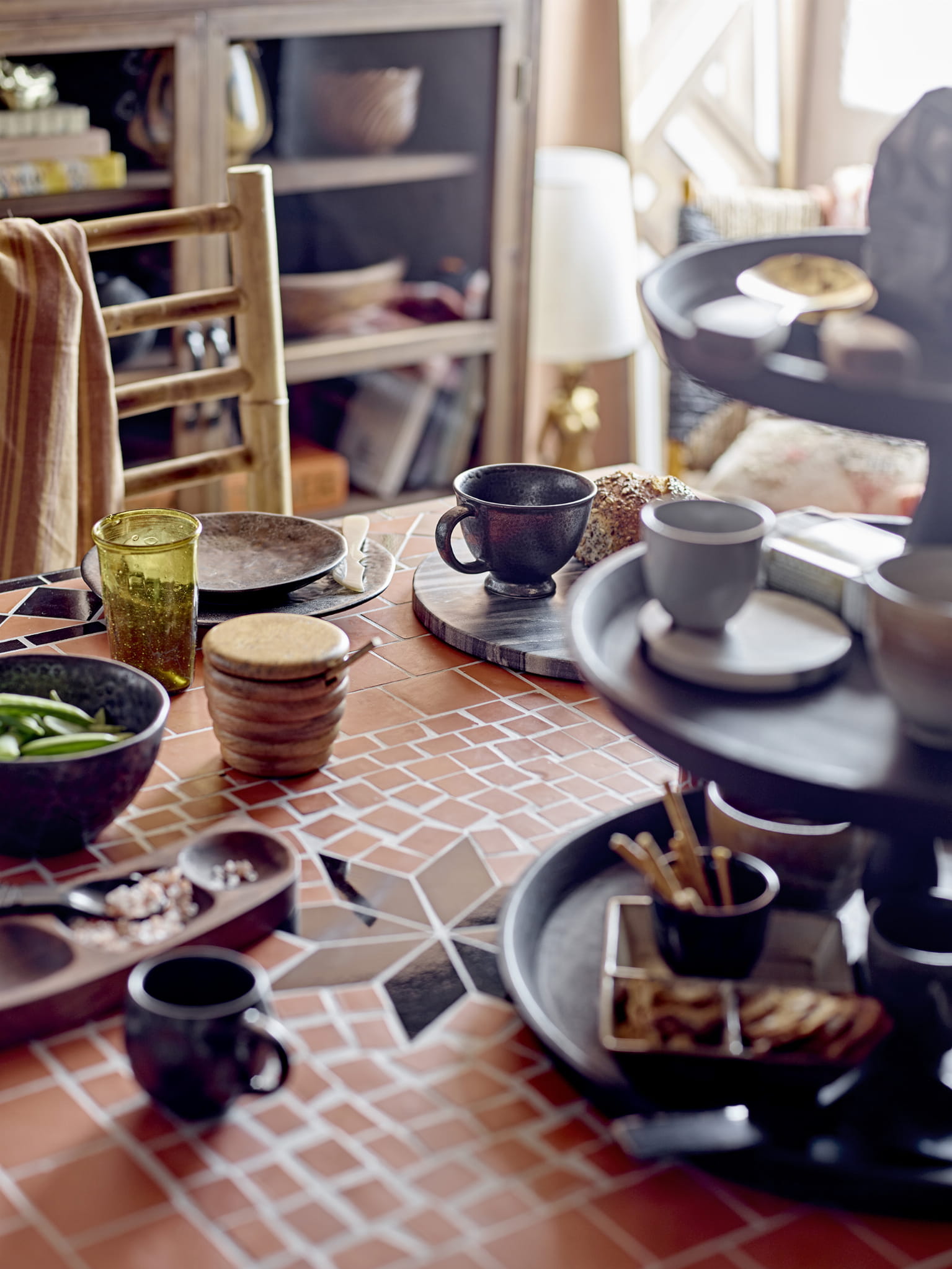 Stół do jadalni Hellen marki Creative Collection jest wykonany z kamienia, a jego blat z pięknej czerwonej mozaiki szklanej, która sprawia, że blat wygląda jak dzieło sztuki. Ten wyjątkowy stół do jadalni nie tylko zapewni elegancką atmosferę, ale także sprawi, że spożywanie posiłków będzie przyjemniejsze.