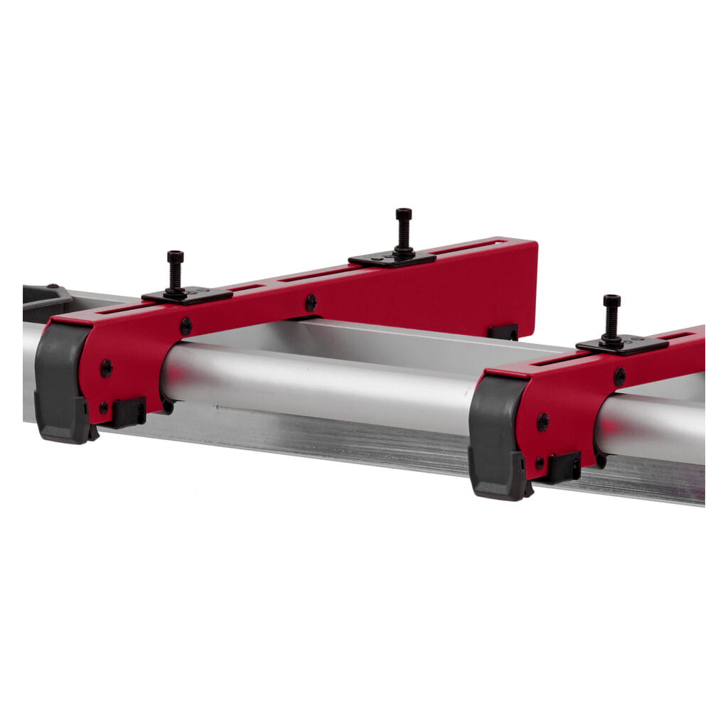 Regulowane mocowania szyn prowadzących są dopasowane do pilarek ukosowych różnych producentów. Oba końce mają regulowane ograniczniki z możliwością regulacji rozstawu w zakresie od 128,5 do 276,5 cm.