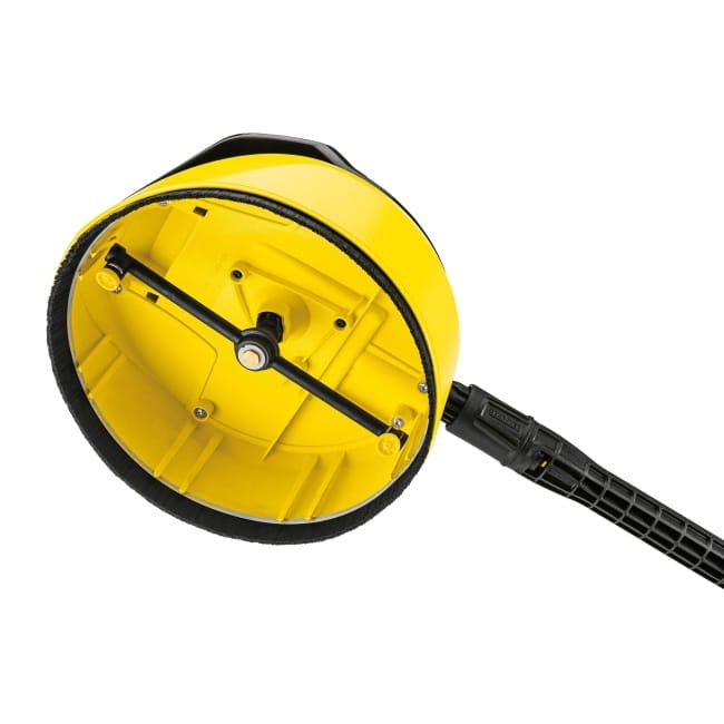 Szczotka obrotowa Karcher T-Racer T5 pomoże Ci skutecznie, szybko i bez rozprysków wody czyścić płaskie i pionowe powierzchnie. Możesz stosować ją do myjek wysokociśnieniowych Karcher klasy K2-K7. Produkt umożliwia płynną regulację strumienia wody, a zatem także jej ciśnienie. Siła strumieni lekko unosi przystawkę nad czyszczoną powierzchnię.