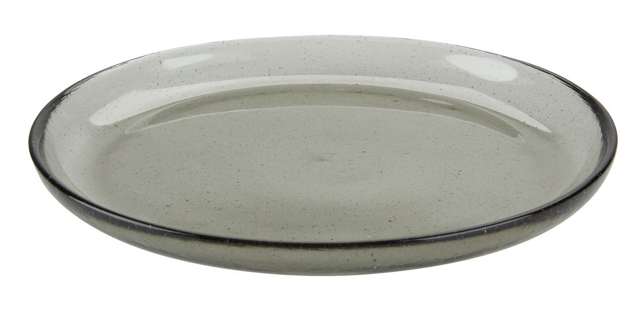 Szklany transparentny przydymiony talerz Ś19 cm obiadowy deserowy retro