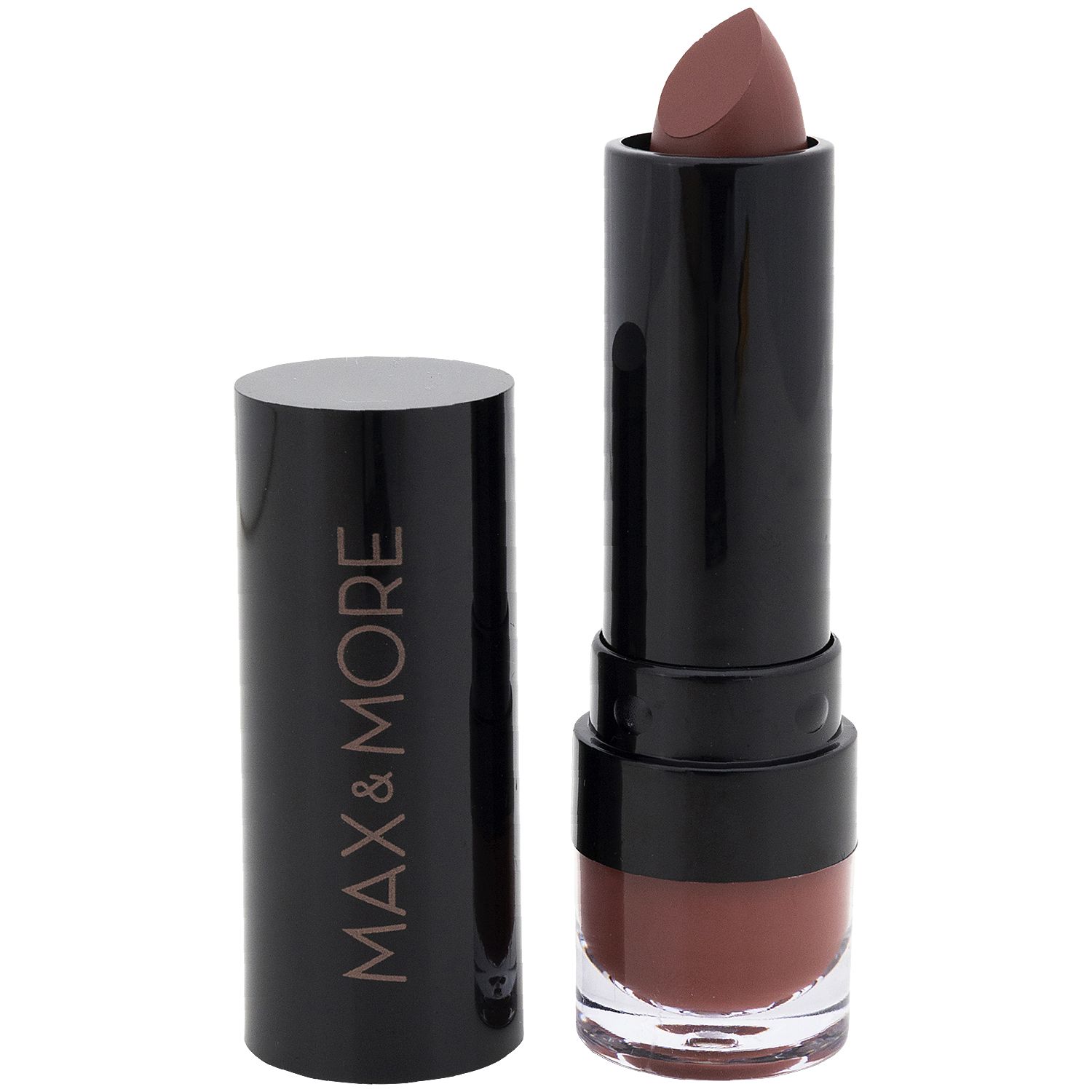 Pomaluj nawilżone usta szminką Max & More, a przyciągniesz uwagę neutralnym odcieniem brązu z odrobiną różu.
