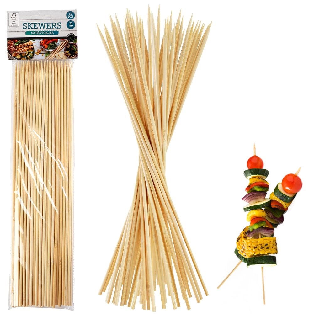 Komplet 50 sztuk długich wykałaczek. Wykonane z drewna bambusowego. Niezastąpione podczas przygotowywania szaszłyków mięsnych, warzywnych oraz owocowych.✅Dane techniczne: