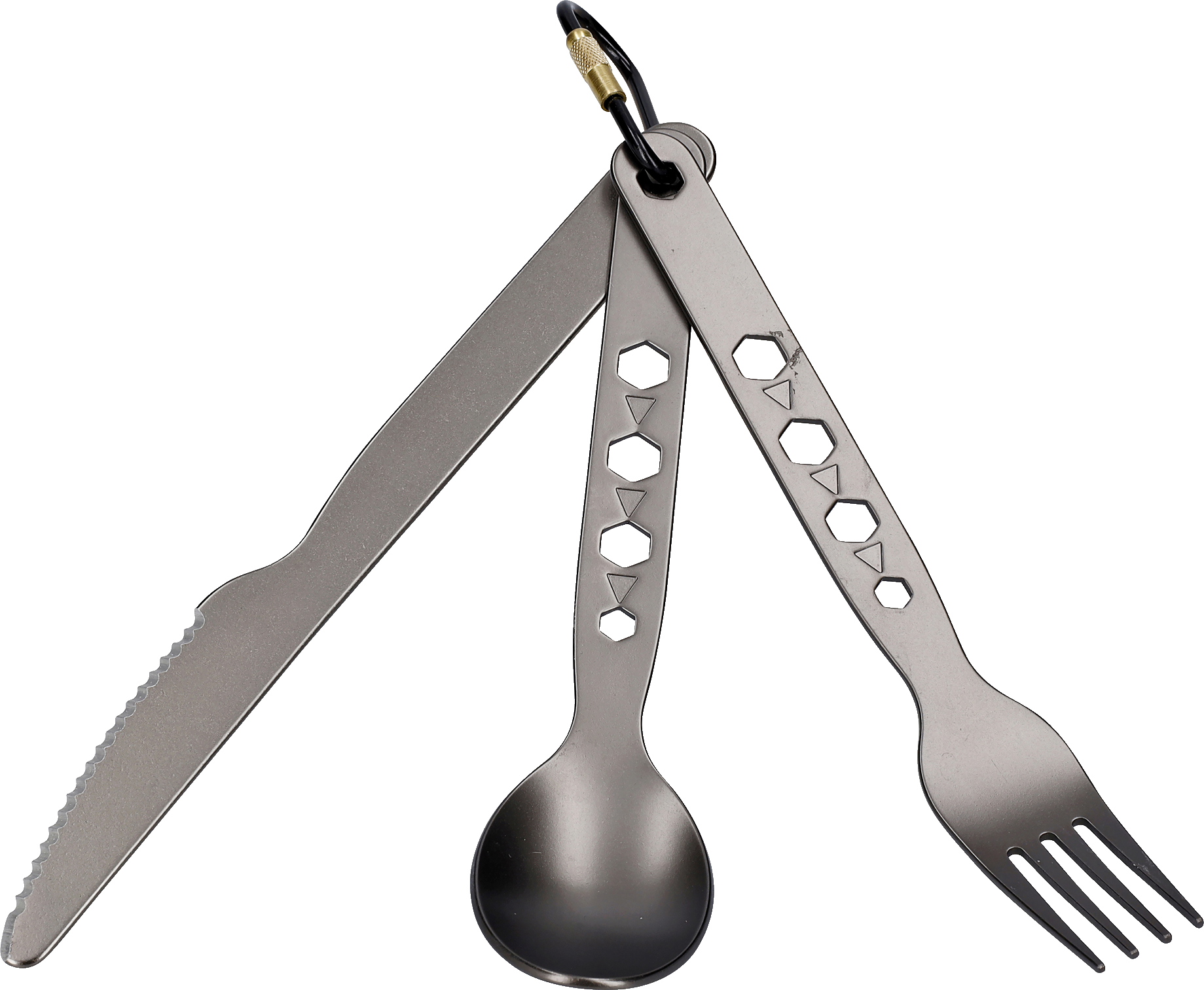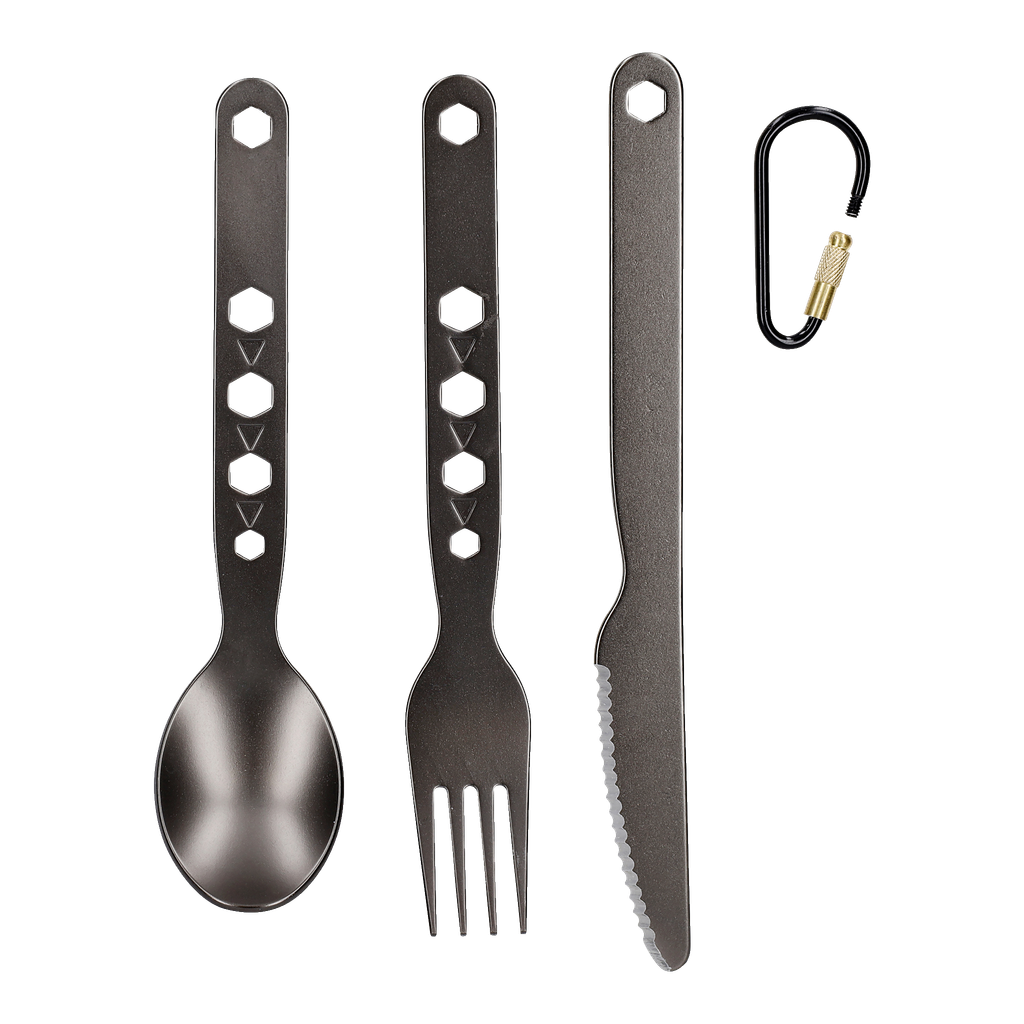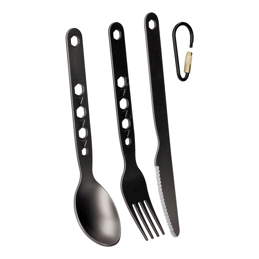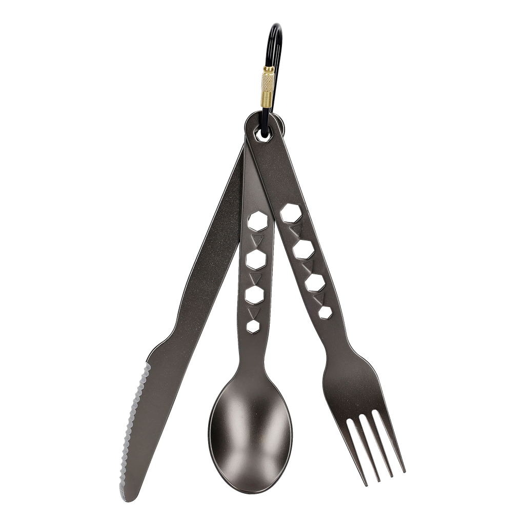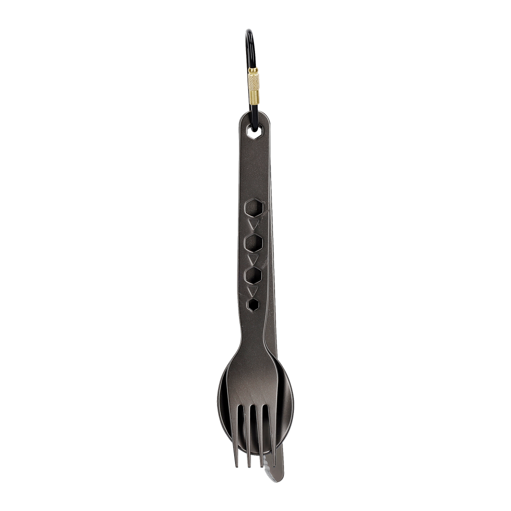 Jeżeli chcesz mieć sztućce pod ręką, możesz je przymocować do kurtki lub paska za pomocą załączonego karabińczyka.