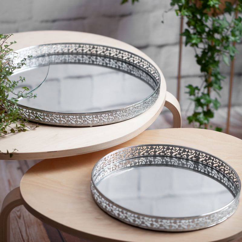 • Metalowa taca dekoracyjna z lustrzanym dnem