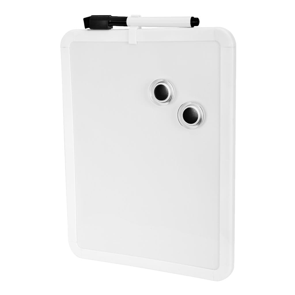 Magnetyczna tablica suchościeralna w rozmiarze mini! Świetna na szybkie notatki i przypominajki w korytarzu, kuchni lub pracy. Tablica ma uchwyt na pisak. W zestawie pisak oraz dwa magnesy. Produkt zawiesza się przy użyciu dołączonej taśmy dwustronnej lub samoprzylepnych pasków magnetycznych.