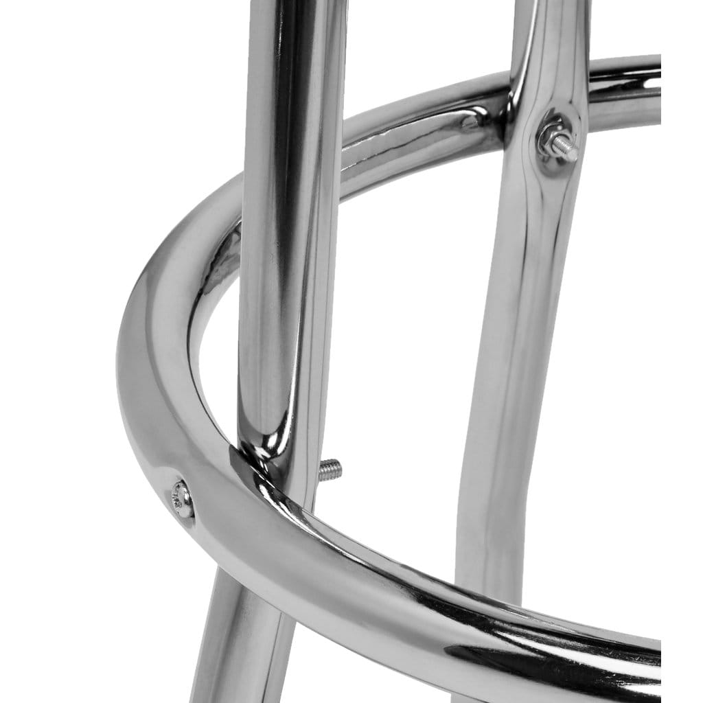 Stelaż taboretu warsztatowego stanowią cztery chromowane rury stalowe zamocowane w zewnętrznym pierścieniu, które zapewniają większą stabilność.