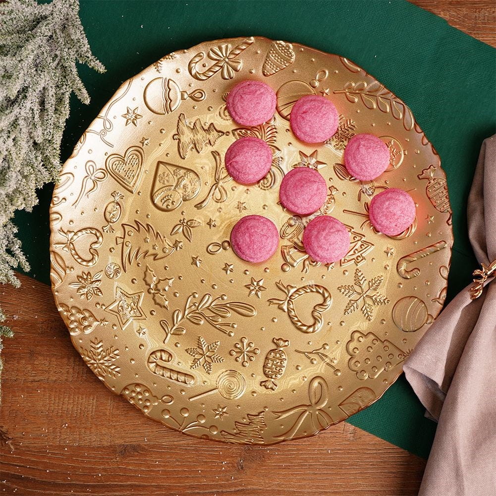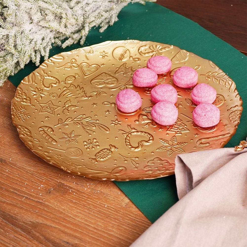 Duży, szklany talerz w kolorze złotym ze świątecznym motywem. Idealny na czas Świąt Bożego Narodzenia. Świetnie sprawdzi się na przekąski, ciasto oraz jako talerz obiadowy.✅Dane techniczne: