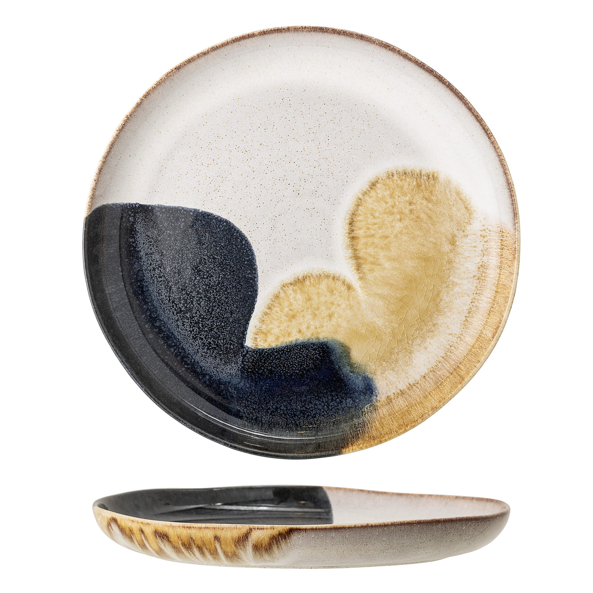 Talerz do serwowania Jules marki Bloomingville to piękny, ręcznie wykonany przedmiot z kamionki z unikalnym, wielokolorowym szkliwem. Dzięki temu artystycznemu połączeniu odcieni curry z głębokim błękitem oceanu możesz wnieść odrobinę sztuki na swój stół. Można myć w zmywarce i używać w kuchence mikrofalowej.