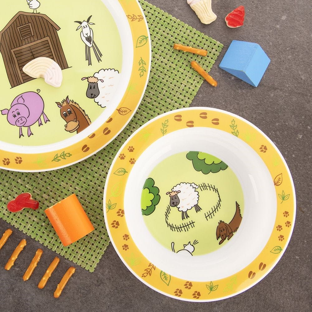 Talerz głęboki dla dziecka z dziecięcym motywem farmy i zwierząt. Idealny na każdy posiłek. Nadaje się do mycia w zmywarce do naczyń.✅Dane techniczne: