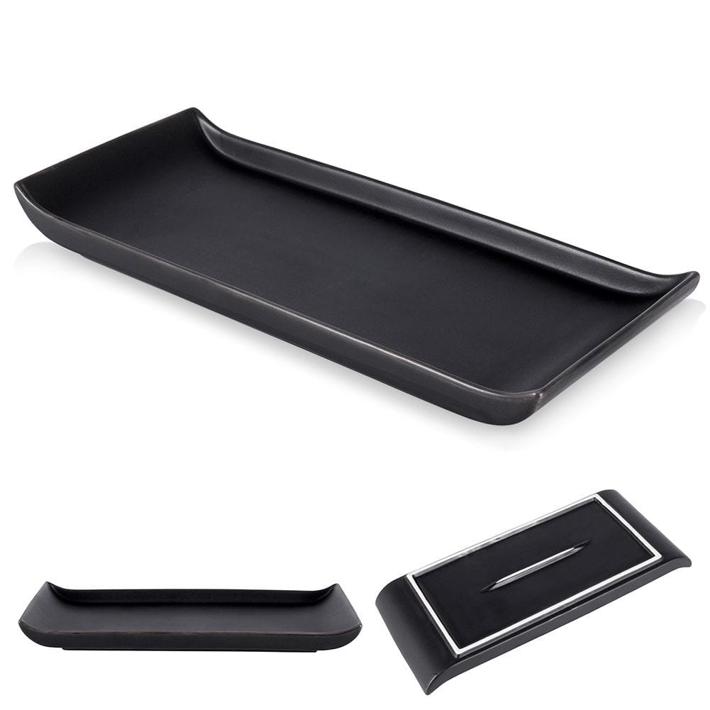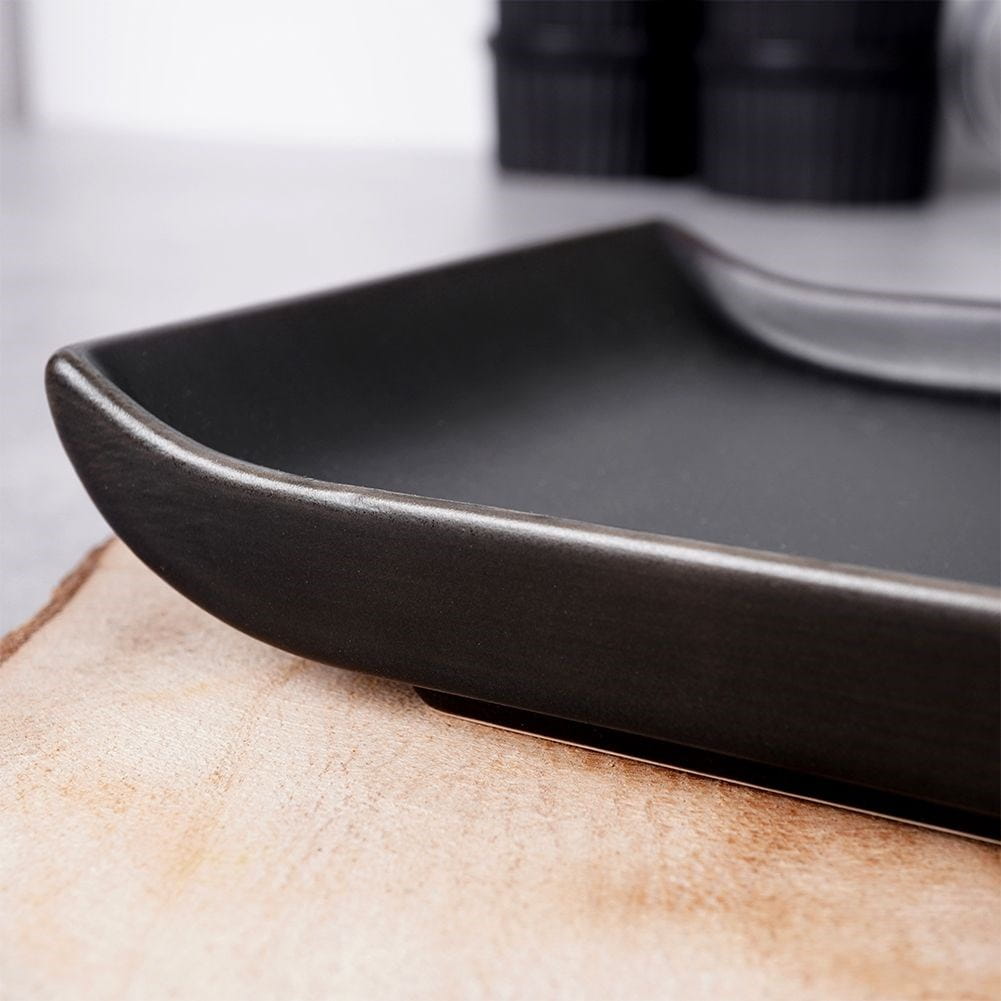 Prostokątny talerz do podawania i serwowania przekąsek. Wykonany z ceramiki w kolorze czarnym. Prezentuje się bardzo efektownie. Nadaje się do zmywarki.✅Dane techniczne: