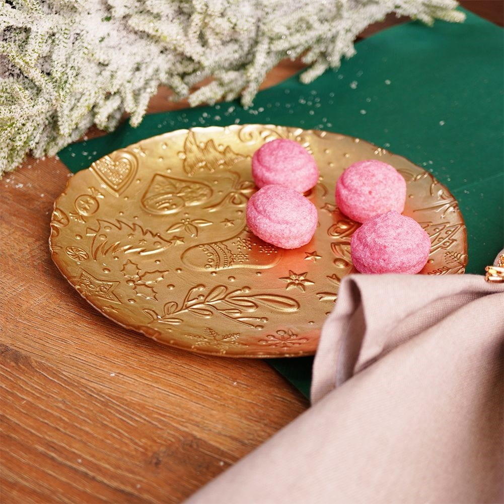 Szklany talerzyk w kolorze złotym ze świątecznym motywem. Idealny na czas Świąt Bożego Narodzenia. Świetnie sprawdzi się na przekąski oraz jako talerzyk deserowy.✅Dane techniczne: