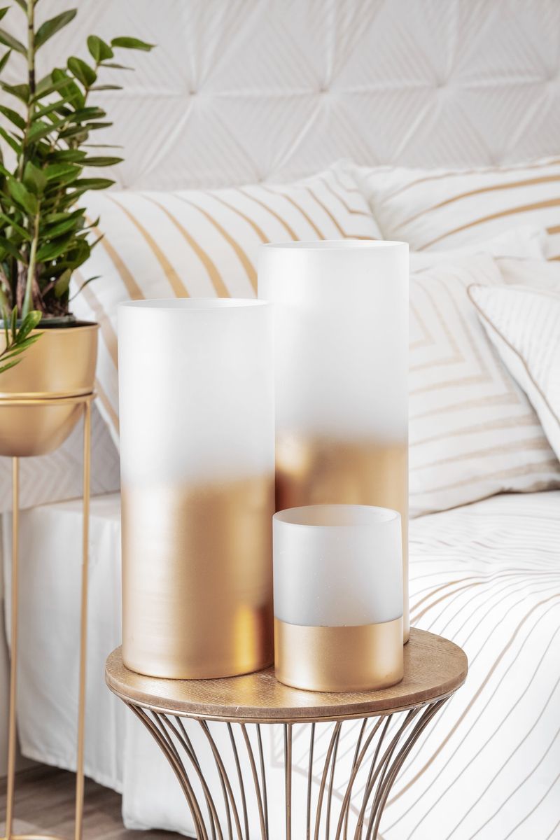 WAZON OZDOBNY NA KWIATY 15X40 BIAŁY ZŁOTY