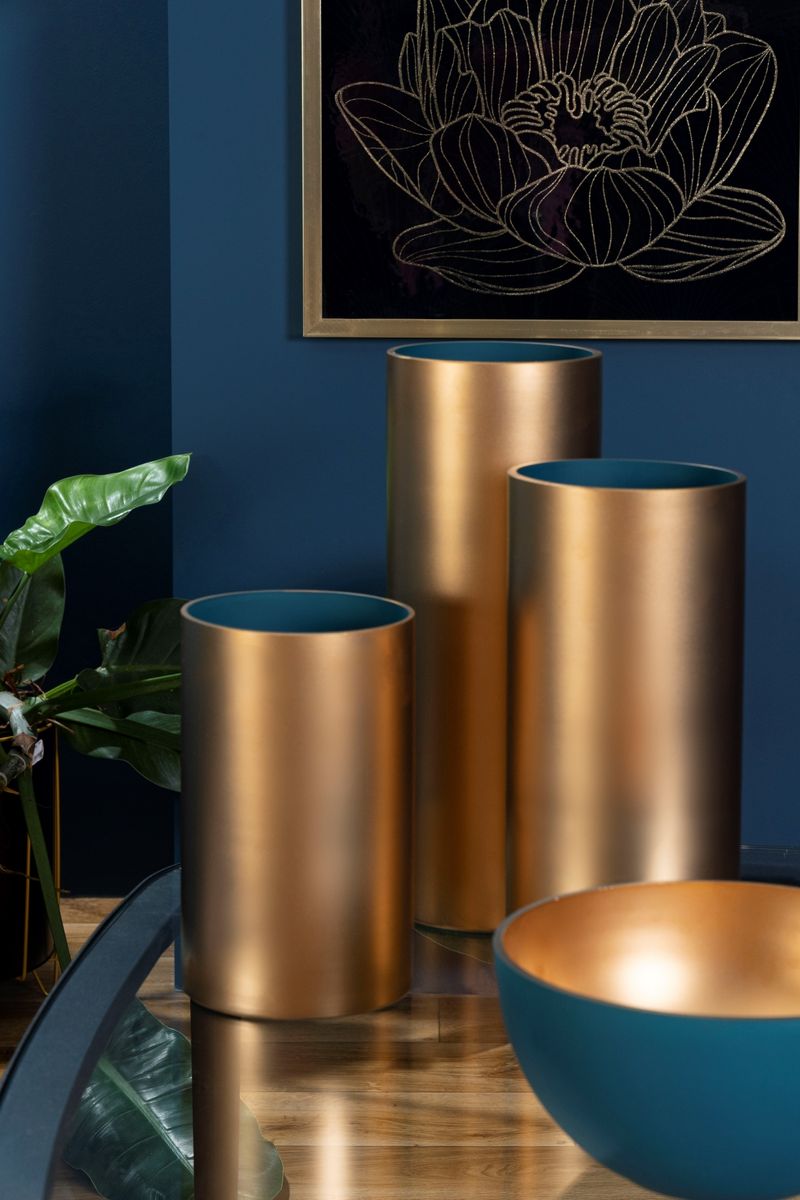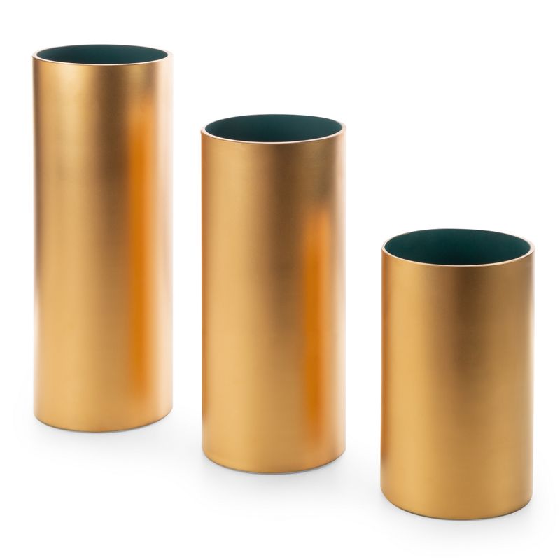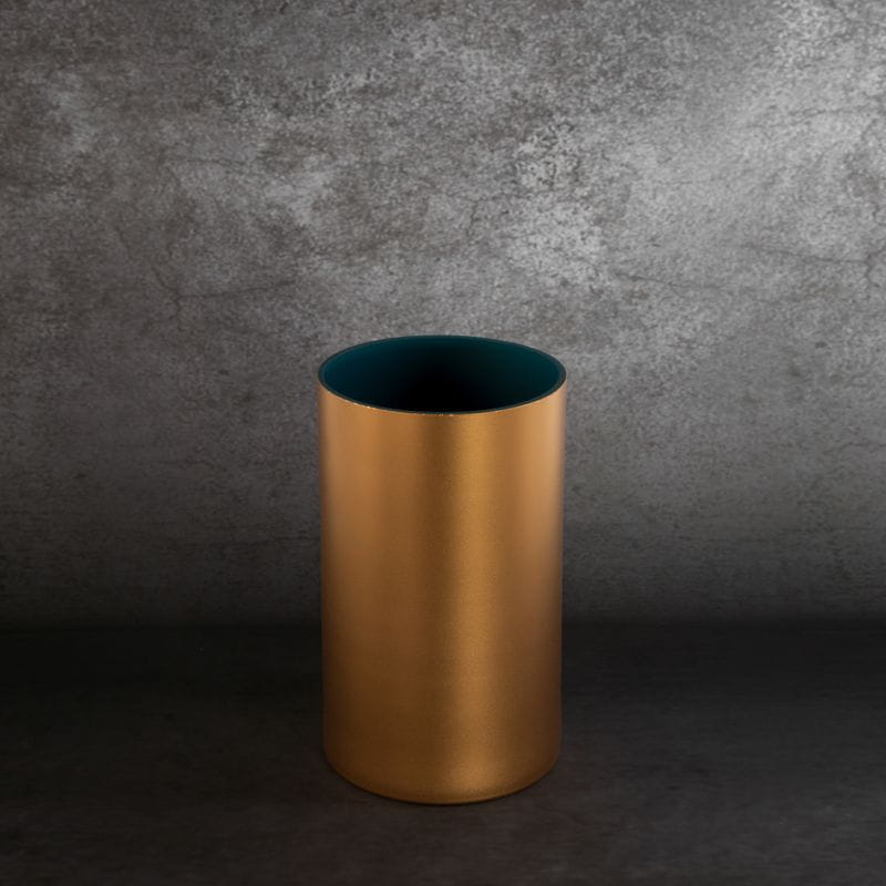 WAZON OZDOBNY NA KWIATY WALEC 15X25 TURKUS ZŁOTY