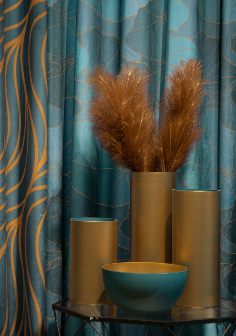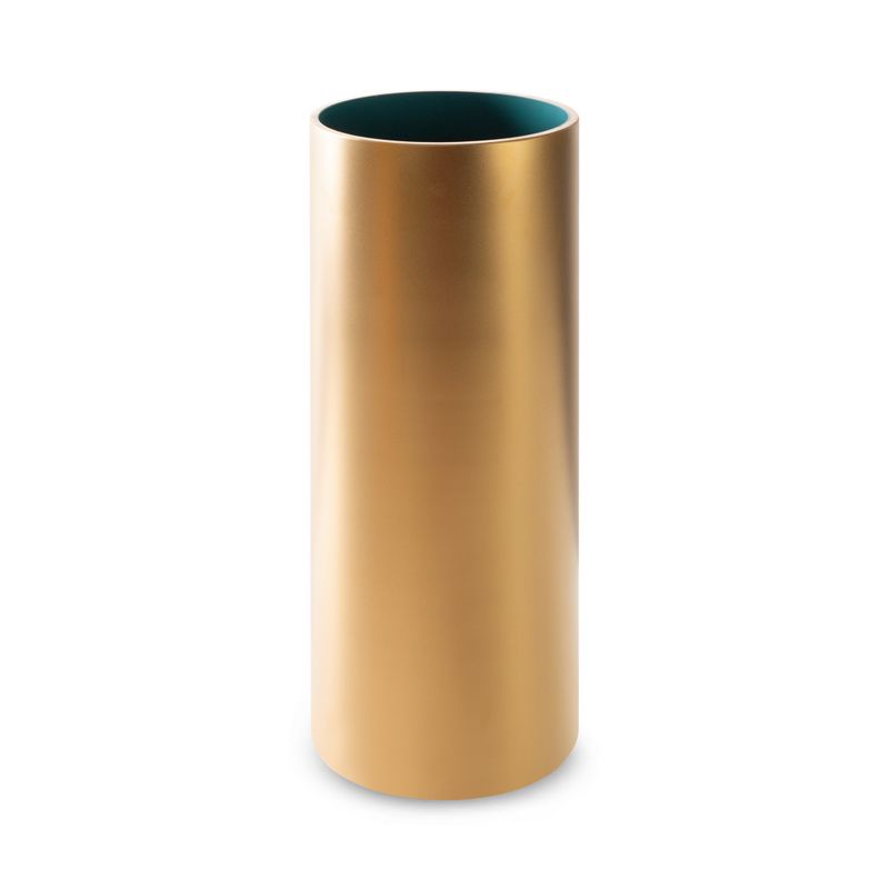 WAZON OZDOBNY NA KWIATY WALEC 15X35 TURKUS ZŁOTY