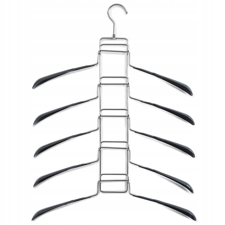 Ten praktyczny uchwyt do przechowywania koszul, kurtek i innych części garderoby jest wyposażony w pięć metalowych wieszaków oraz haczyk do zawieszenia. Dzięki niemu utrzymanie porządku w szafie staje się łatwiejsze, a ubrania nie pogniotą się. Umożliwia szybki i wygodny dostęp do zawartości, a przy tym nie zajmuje wiele miejsca.