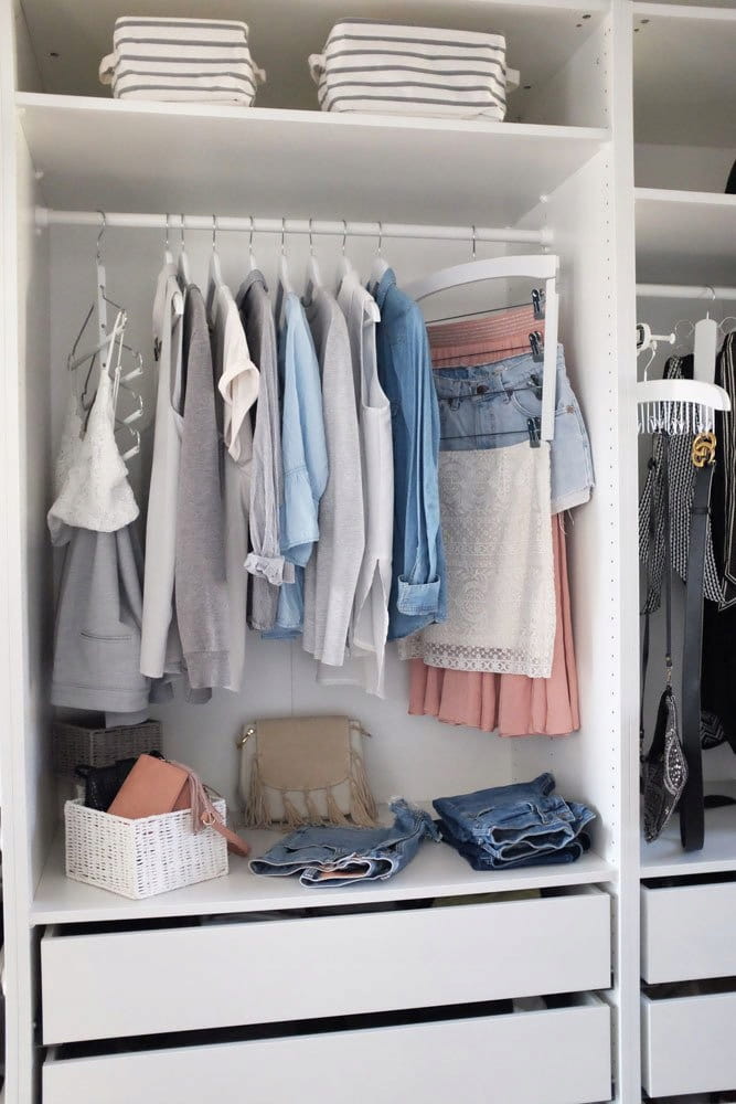 Wyposażony w cztery wieszaki z gumową powłoką oraz haczyk do zawieszenia, pozwoli Ci utrzymać porządek w szafie i zapobiec pognieceniu się ubrań. Dzięki niemu szybko i wygodnie będziesz mógł sięgnąć po potrzebną Ci rzecz. Co więcej, uchwyt nie zajmuje wiele miejsca, a jego biały kolor będzie pasował do każdej szafy.