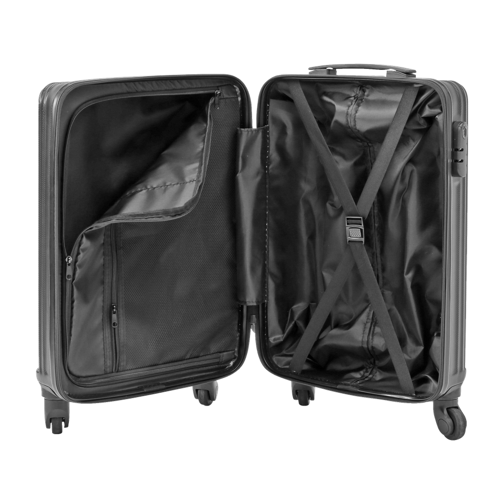 Wewnątrz znajduje się przegroda z kieszenią i zamkiem błyskawicznym, która ułatwia praktyczne spakowanie i uporządkowanie ubrań i innych osobistych rzeczy. Dolna komora posiada również elastyczne pasy pomagające utrzymać zawartość walizki na miejscu.