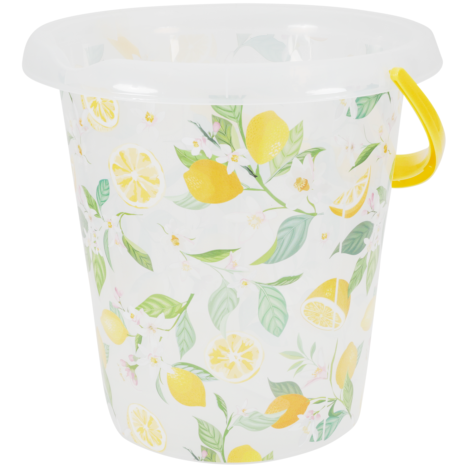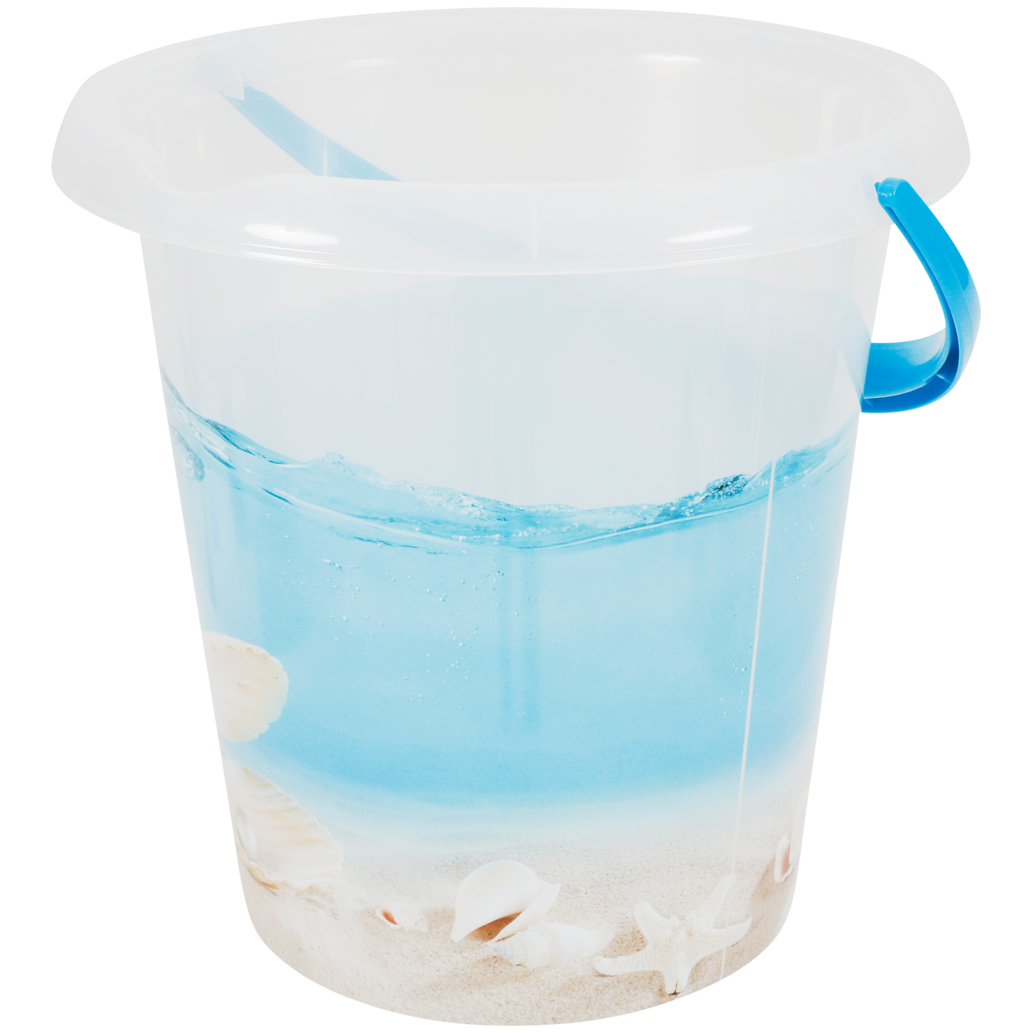 Przezroczyste wiadro z letnim nadrukiem i solidnym uchwytem. Idealne do sprzątania!