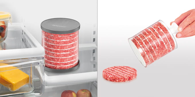Doskonała do przygotowywania uformowanych klasycznych hamburgerów oraz faszerowanych hamburgerów, ich higienicznego przechowywania oraz łatwego wyjmowania.