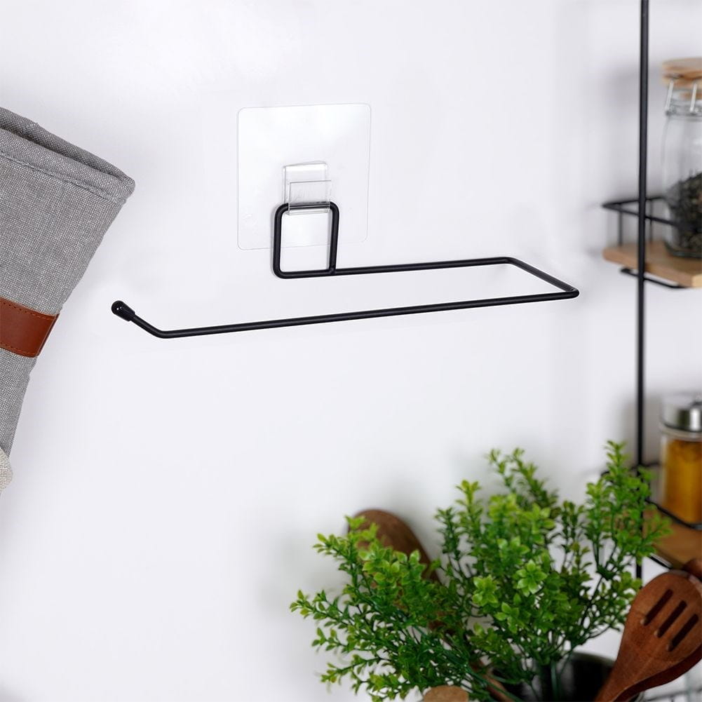 Wieszak kuchenny wykonany z czarnego metalu na ręczniki papierowe. Wyposażony w mocną samoprzylepną podkładkę, dzięki czemu nie wymaga wiercenia.✅Dane techniczne:
