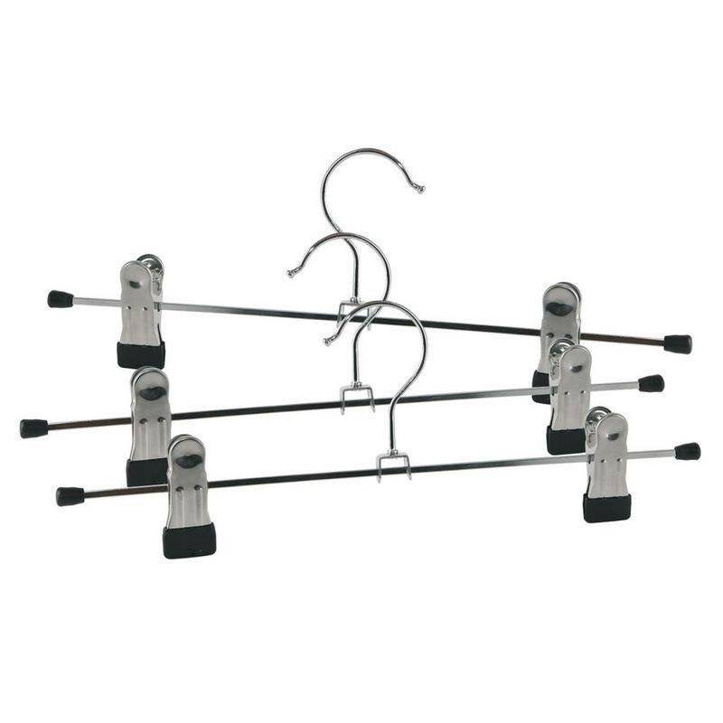 Wieszak z klipsami na spodnie lub spódnice, możliwość dopasowania szerokości za pomocą ruchomych klipsów. Końcówki klipsów są dodatkowo pokryte tworzywem.✅Dane techniczne: