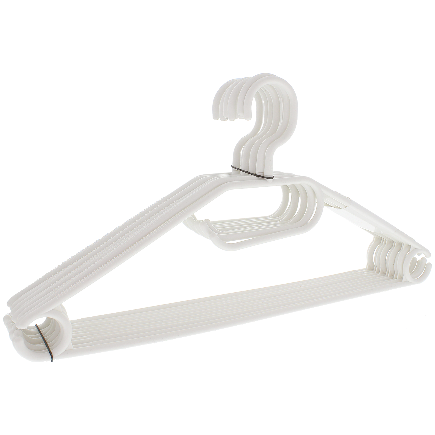 Wieszaki z tworzywa sztucznego mają warstwę antypoślizgową, dzięki czemu ubrania nie zsuwają się łatwo.