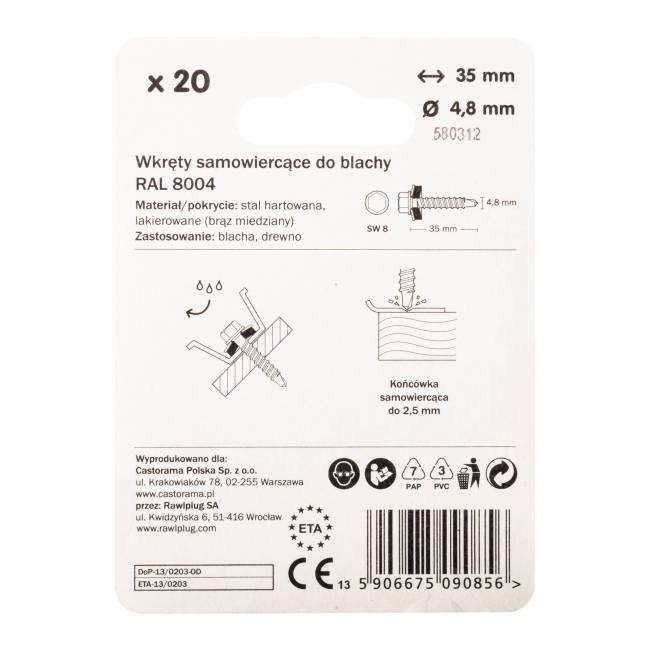 Wkręt samowiercący Diall OD 4,8 x 35 mm brązowy miedziany