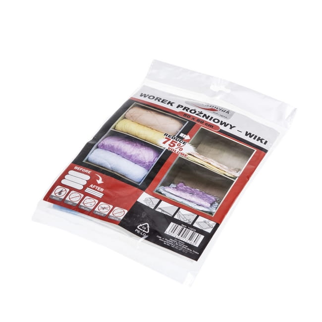 Worek próżniowy Wiki przyda się w każdej szafie czy garderobie. Kiedy nastaną cieplejsze dni, z jego pomocą możesz pozbyć się z szafy takich rzeczy jak grube puchowe kołdry, koce, a nawet kurtki czy swetry. Po odessaniu powietrza z zapakowanego worka zyskasz w szafie dużo wolnej przestrzeni, którą wykorzystasz do innych celów.