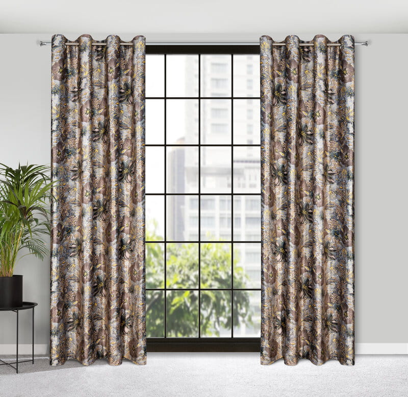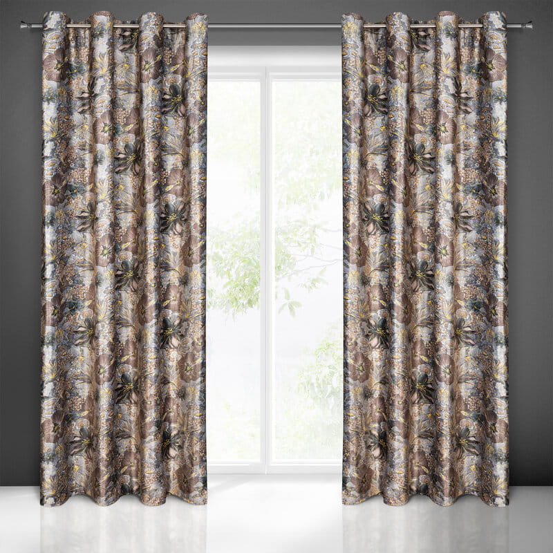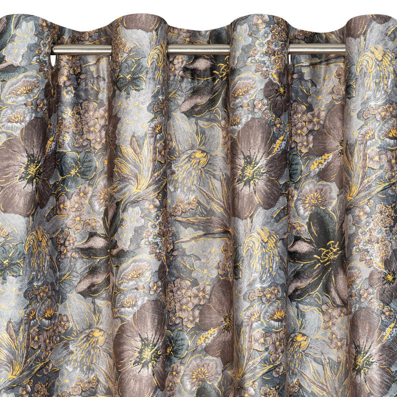 ZASŁONA WELWETOWA SZARA KWIAT NA PRZELOTKI 140X250