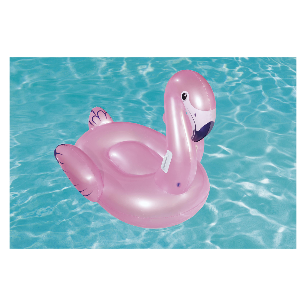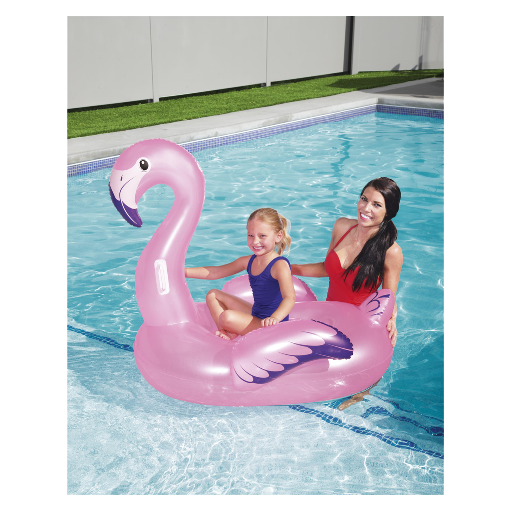 Kąp się razem z dmuchanym flamingiem! Ta różowa zabawka kąpielowa z brokatem będzie dobrym kompanem zabaw w wodzie. Flaming ma dwa uchwyty na szyi.