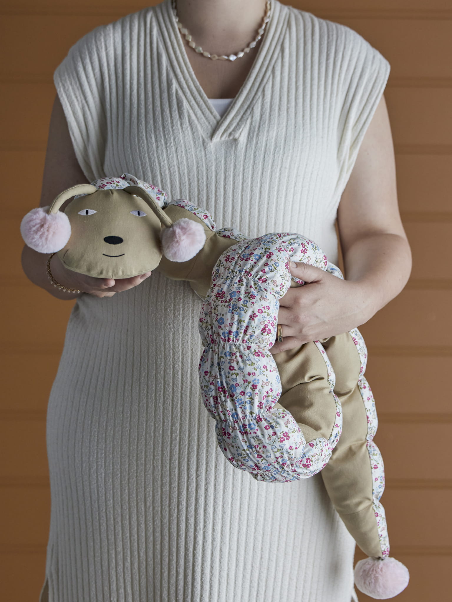 Miękka zabawka Sofi marki Bloomingville MINI to piękne, długie, fantazyjne zwierzątko wykonane z bawełny. Miękka zabawka ma puszysty ogon i uszy w kolorze różowym, a korpus ma wspaniały kwiatowy wzór. Zabawka może być używana jako obrzeże wokół dziecka w łóżeczku lub do zabawy w pokoju dziecięcym.