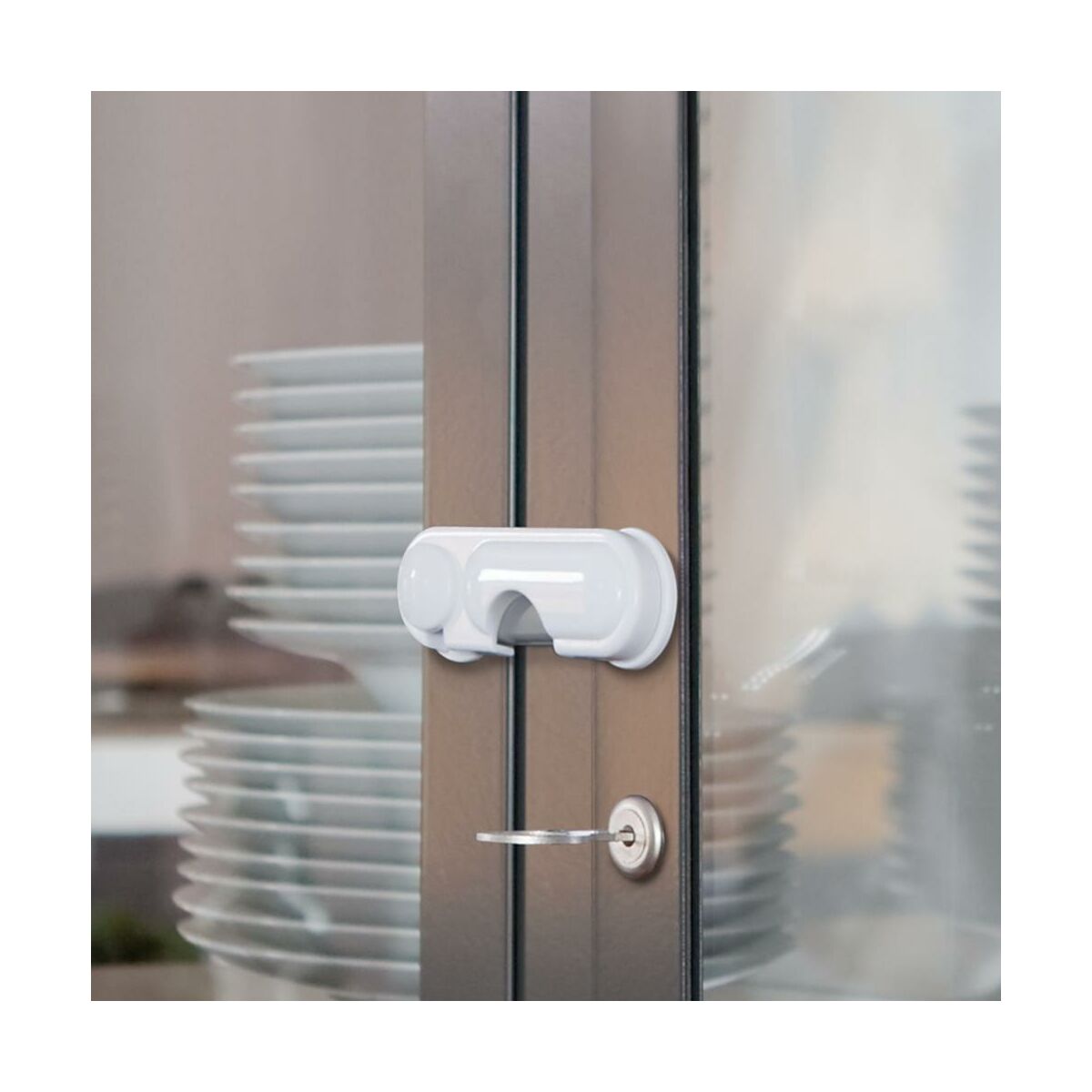 Zabezpieczenie mebli witryny Lia Abus przeznaczone jest do stosowana na szkle. W łatwy sposób można je przykleić do mebla. Zabezpieczenie uniemożliwia dziecku otwarcie szklanych gablot lub przeszklonych szafek.
