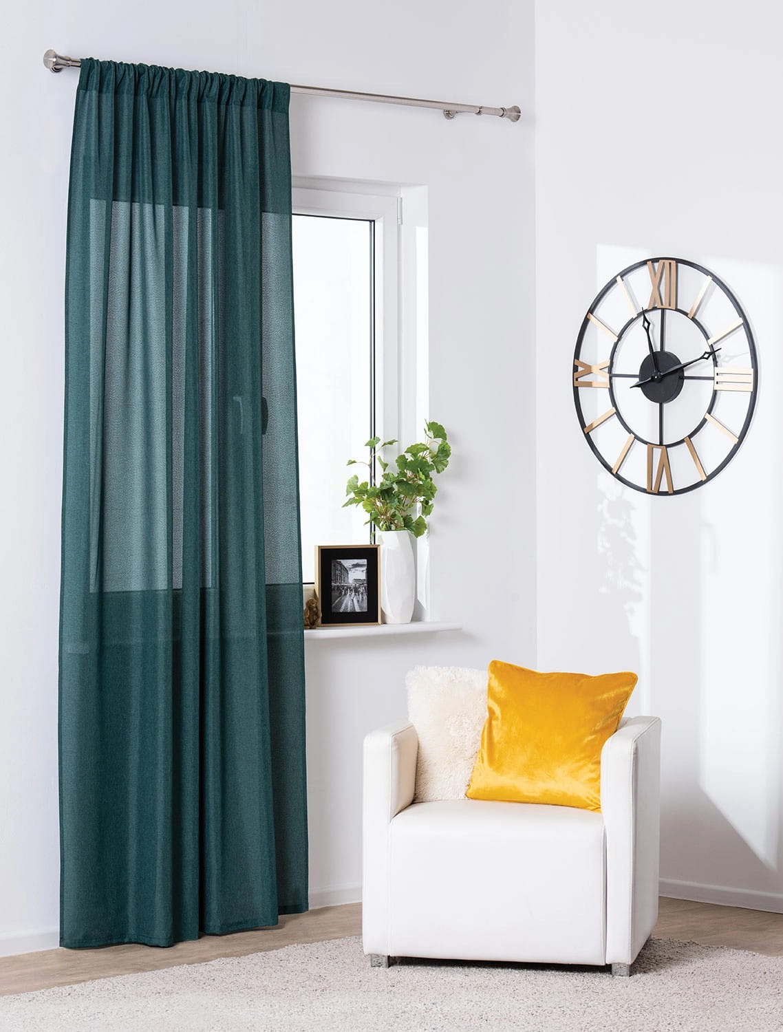 Zasłona Derby zielona 140 x 260 cmZasłony dekoracyjne to wyjątkowy element wyposażenia domu, który stanowi estetyczne wykończenie aranżacji pomieszczenia, nadając mu indywidualny styl i podkreślając charakter całości wystroju. Jest to także świetny sposób na szybką i niedrogą metamorfozę salonu, sypialni, czy też innych pomieszczeń w przestrzeni domowej lub biurowej. Tekstylia dekoracyjne świetnie wpływają na atmosferę i nastrój. Jasne kolory i lekkie materiały mogą sprawić, że pomieszczenie wydaje się bardziej przestronne i ciepłe, podczas gdy ciemniejsze i cięższe zasłony mogą dodać intymności i przytulności.