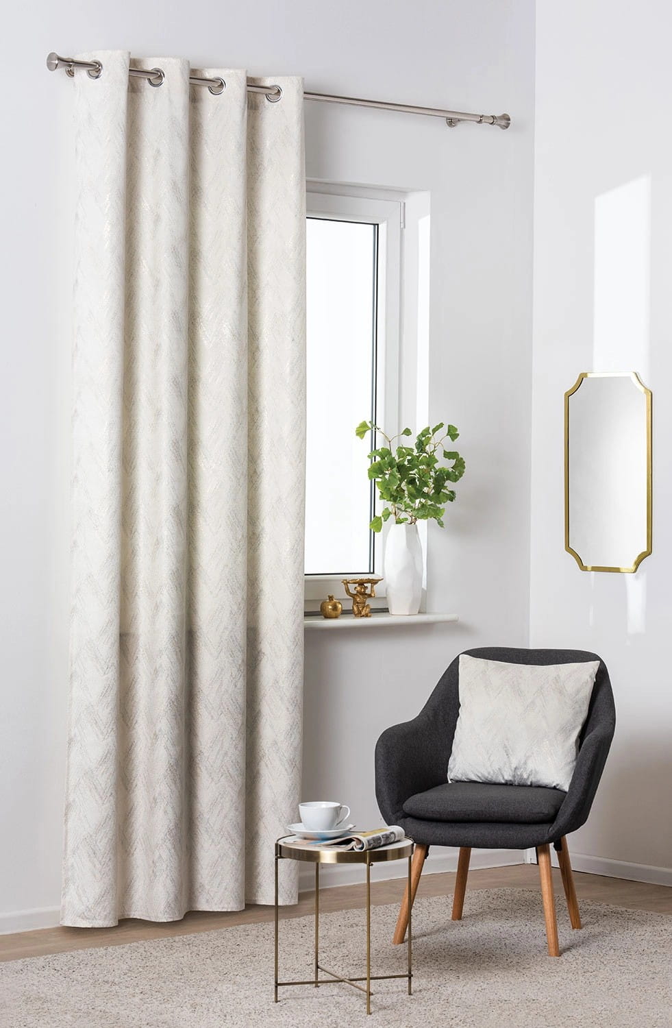 Drukowany welwet ze złotymi geometrycznymi przetarciami sprawia, że zasłony z serii Dubai charakteryzują się wyjątkową elegancją i zapewnią szykowne wykończenie każdej przestrzeni. Efektowny materiał i zachwycający wzór łączą się z uniwersalną, klasyczną kolorystyką, przez co zasłony Dubai sprawdzą się w różnorodnych aranżacjach wnętrz. Przyciemniająca zasłona nie tylko pozwoli regulować dopływ światła do pomieszczenia w zależności od pory dnia, ale także ochroni domowników przed wścibskimi spojrzeniami z zewnątrz. Zawieszenie na kółkach jest bardzo wygodnym rozwiązaniem, pozwalającym na szybkie wieszanie oraz zdejmowanie zasłony, a także na płynne przesuwanie jej na karniszu.