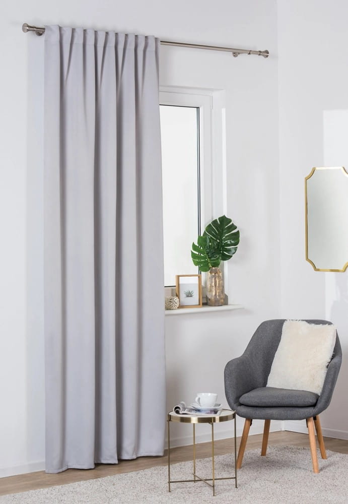 Zasłona ECLIPSE szara 140 cm x 260 cm na taśmieTkanina zaciemniająca (blackout), dzięki której nie będzie nas budziło światło z zewnątrz. Zasłona ECLIPSE zaciemnia w 70%. Tkanina w 100% poliestrowa. Sposób upięcia zasłony to taśma z kieszeniami.
