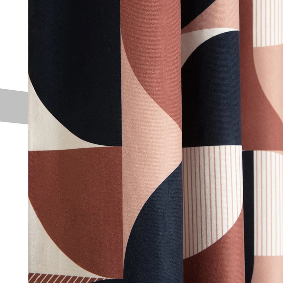 Zasłona ELOUAN na przelotkach 140 x 280 terracotaDekoracyjna, półtransparentna zasłona w geometryczne wzory będzie pięknym dopełnieniem wystroju salonu lub sypialni. Elegancko wykończy przestrzeń okienną i wniesie do pomieszczenia ciepłą, przytulną atmosferę. Modny deseń w połączeniu z niezwykle szykowną i ponadczasową kolorystyką sprawia, że dodatek ten doskonale sprawdzi się w nowoczesnych aranżacjach lub ożywi i wniesie nową energię do bardziej klasycznych aranżacji.