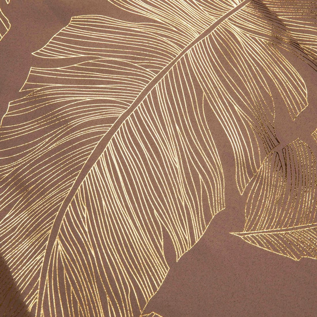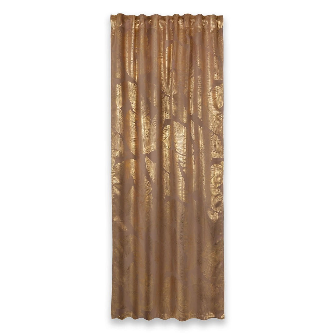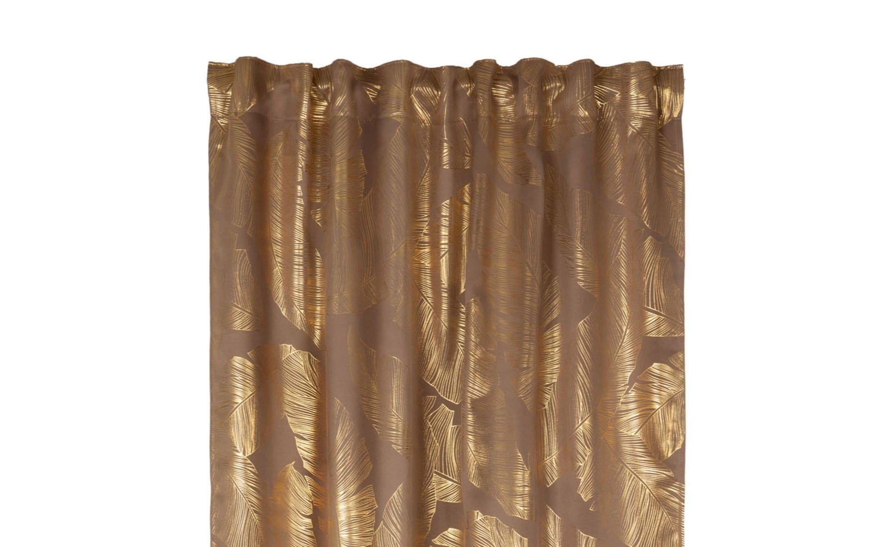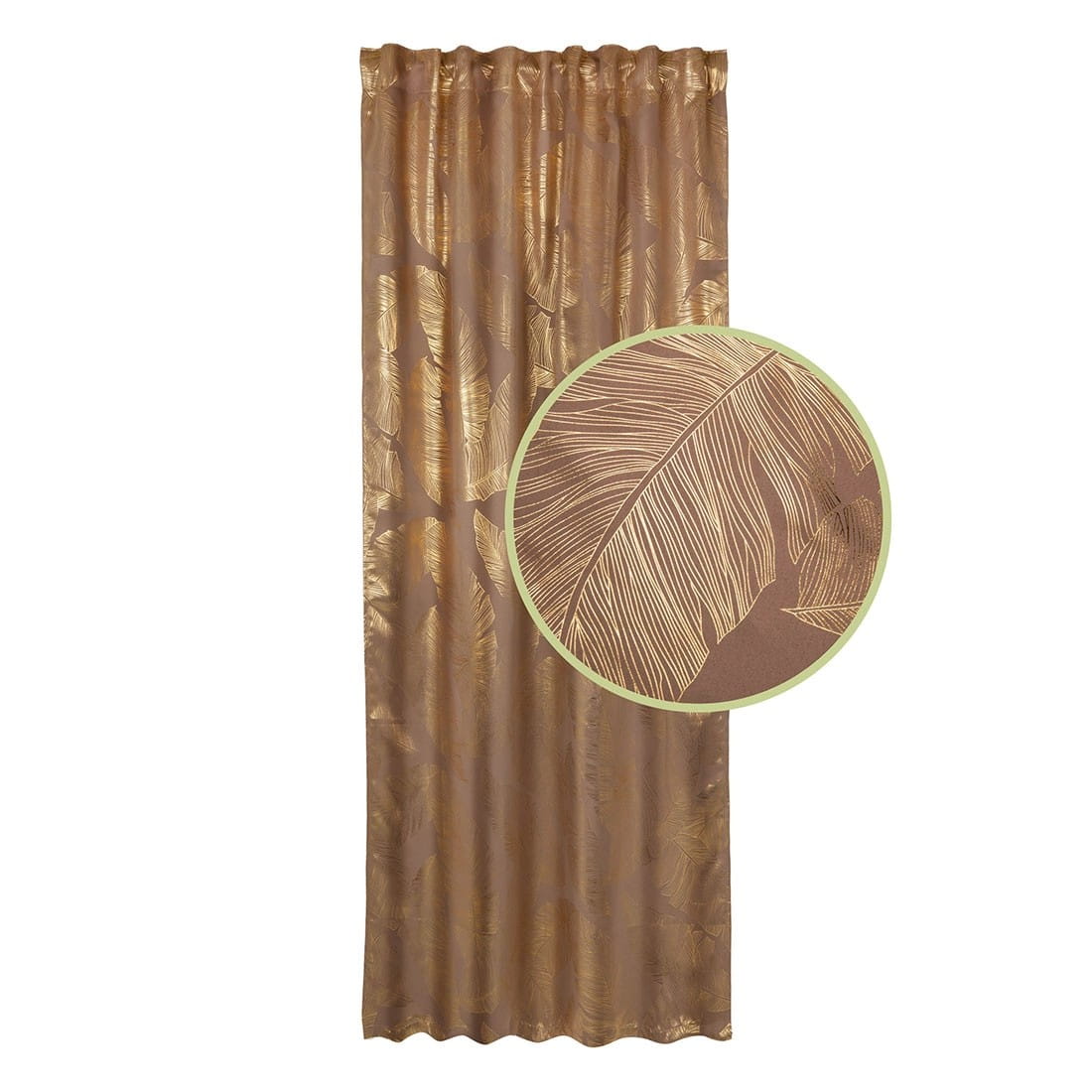 Zaciemniająca zasłona wykończona na taśmie z tunelem nadaje się do zawieszenia na karnisz oraz szynę. Zasłona stanowi stylowy i elegancki element wykończeniowy każdego okna, jednocześnie podkreślając charakter salonu, sypialni, gabinetu czy innego pomieszczenia dzięki wzorowi liści bananowca. Sprawdza się jako pojedyncza ozdoba okna, jak również jako baza bogatszej kompozycji.