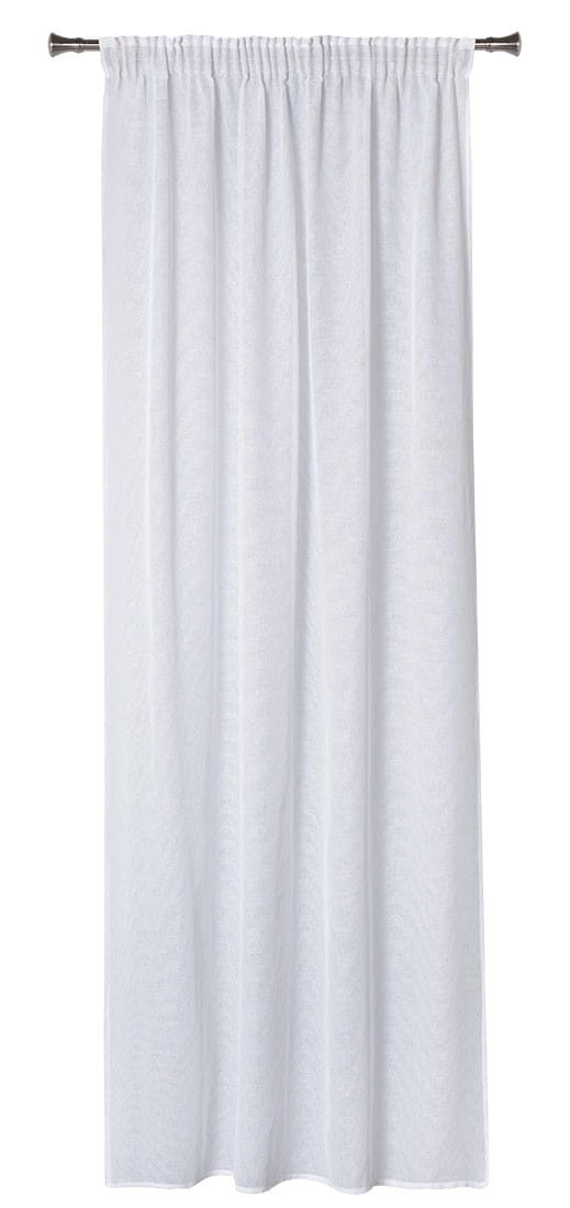 Zasłona NICE na taśmie 140 x 260 cm białaGładka, przepuszczająca światło zasłona w eleganckiej, klasycznej bieli wprowadzi wyjątkowe poczucie komfortu i szyku do Twojego mieszkania, jednocześnie nie przytłaczając pomieszczenia. Delikatna powierzchnia zasłonki nadaje jej wyjątkowej lekkości.