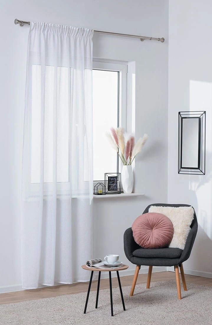 Zasłona NICE wprowadzi do pomieszczenia spokój i przytulną atmosferę, będzie stanowić doskonałe wykończenie przestrzeni okiennej samodzielnie lub jako baza dla bogatszej kompozycji. Mocowanie na taśmie umożliwia osiągnięcie wymaganej szerokości oraz pięknego dekoracyjnego marszczenia, dzięki czemu zasłona stanie się estetycznym elementem oprawy okna, pozwalając na szybką i łatwą metamorfozę sypialni lub salonu.