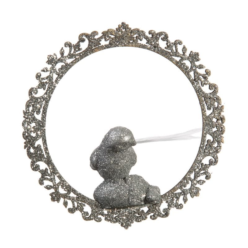 Ozdoba świąteczna wykonana z tworzywa sztucznego szerokość: 12 cm, długość: 5 cm, kolor: srebrny, Aukcja dotyczy 6szt.