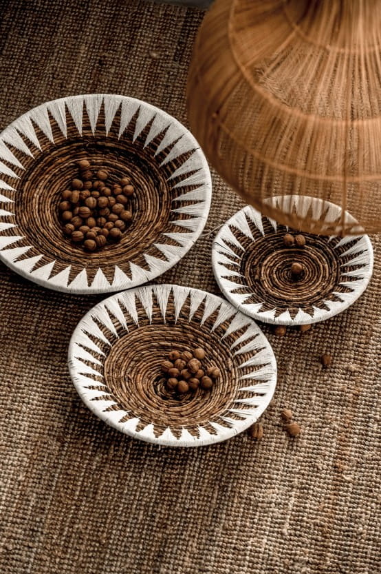 Zestaw 3 Talerzy z Liści Bananowca, Rękodzieło, Biały