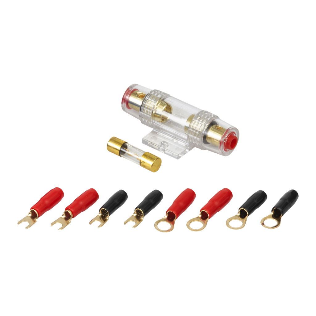 Grubość przewodów to 10 mm², dzięki czemu zestaw pasuje do końcówek mocy do 500 W.