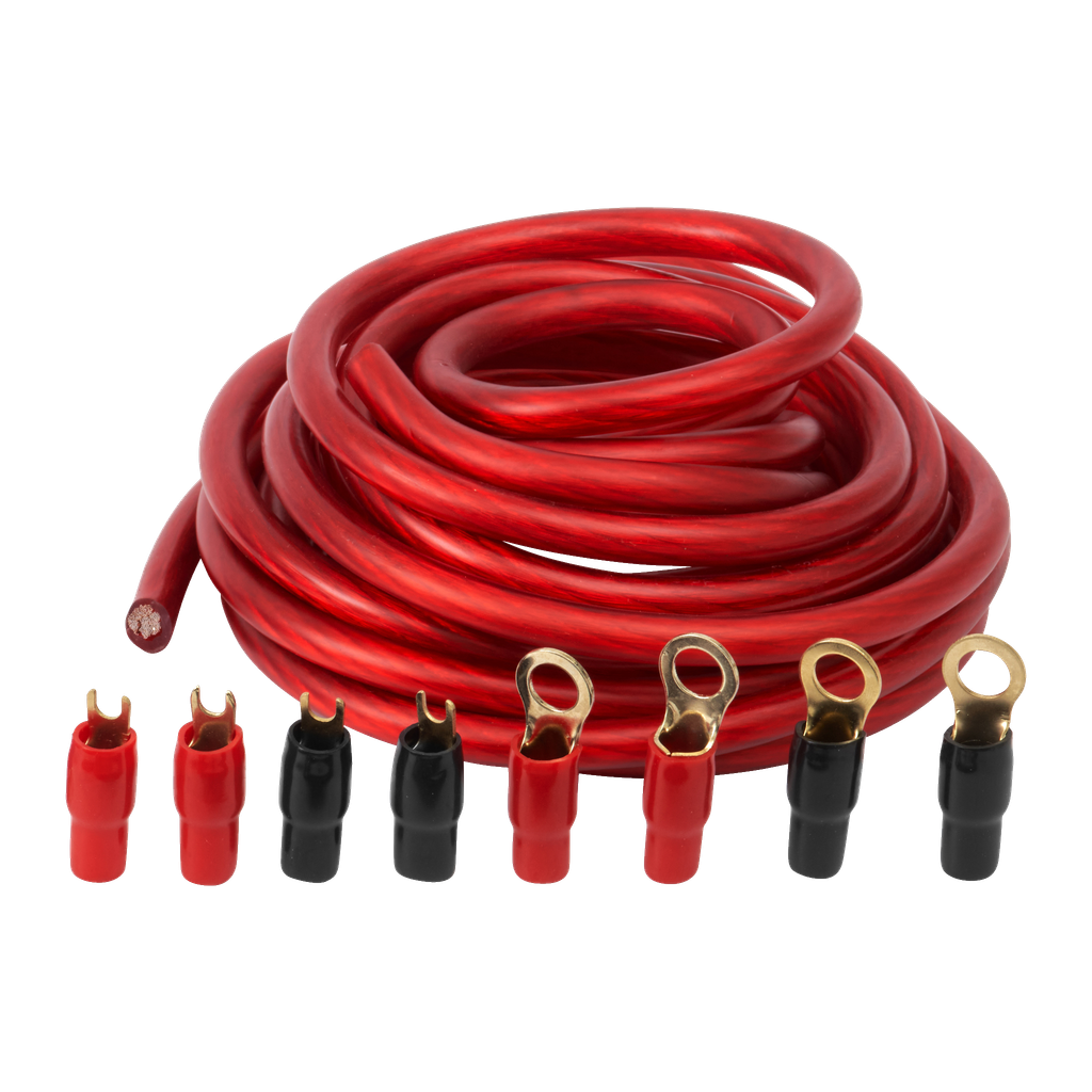Grubość przewodów to 20 mm², dzięki czemu zestaw pasuje do końcówek mocy do 800 W.