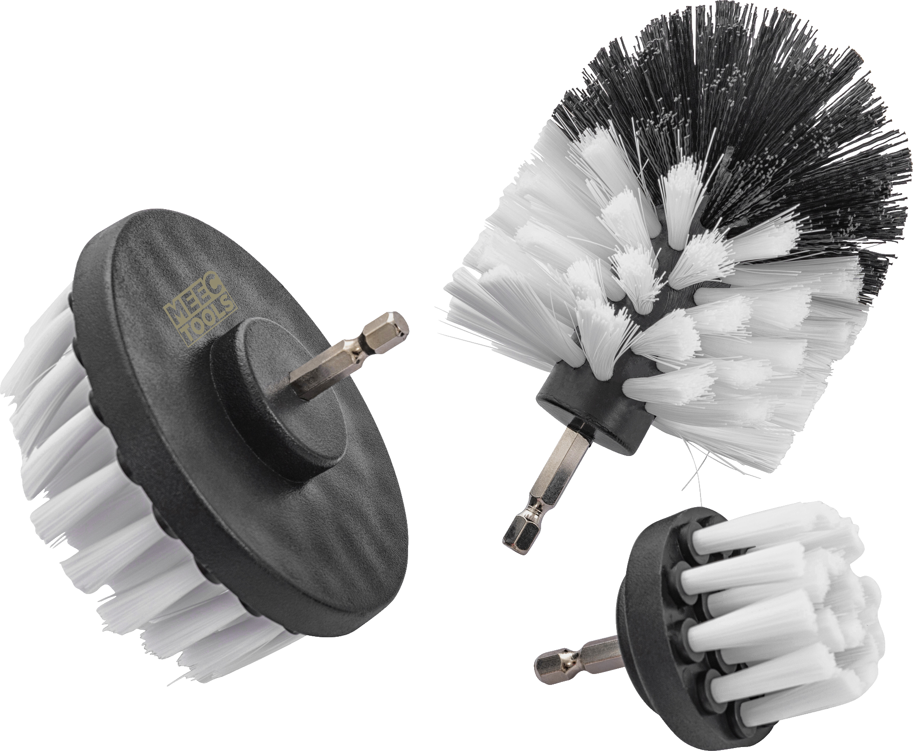 Szczotki do czyszczenia w trzech różnych rozmiarach i kształtach z uchwytem (HEX 6,35). Pasują do wkrętarki lub wiertarki. Szczotki mają miękkie włosie i doskonale nadają się do czyszczenia łazienek, glazury, szkła, siedzisk samochodowych i felg.