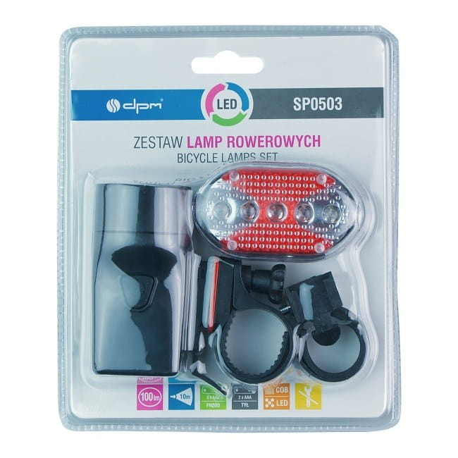 Zestaw lampek rowerowych Dpm okrągły zapewni bezpieczne podróżowanie w porach wieczorowych. Produkty zasilane są bateriami typu AAA. Bardzo łatwo zamocujesz je w odpowiednim miejscu na rowerze. Komplet z lampkami wyróżnia się solidną i szczelną konstrukcją. W sklepie Castorama znajdziesz więcej opcji zestawów, które różnią się parametrami technicznymi.