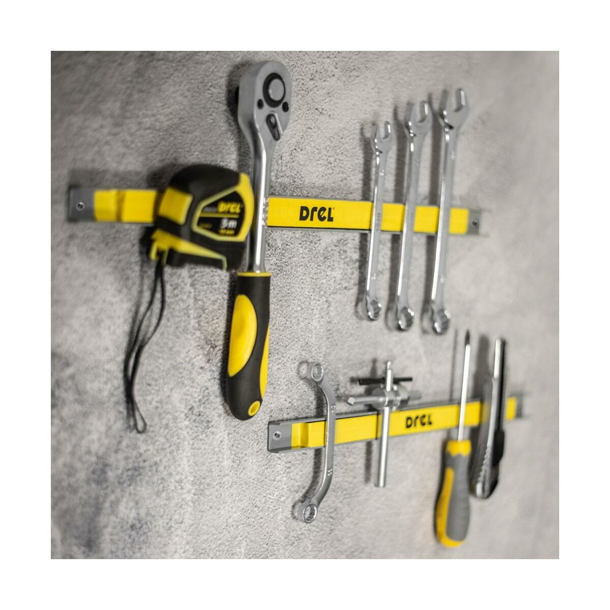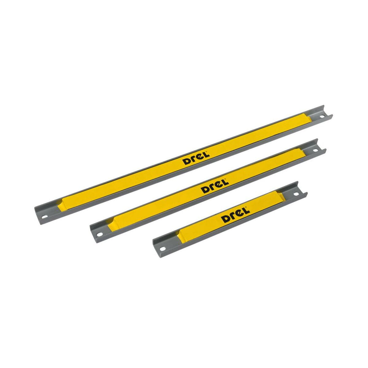 Zestaw 3 szt.listew magnetycznych marki Drel to produkt, który idealnie sprawdzi się w każdym garażu czy przydomowym warsztacie. Dzięki listwom możliwe będzie uporządkowanie i wyeksponowanie narzędzi, co w znacznym stopniu ułatwia do nich dostęp. Listwy są wykonane ze stalowego profila wypełnionego magnesem, dzięki czemu z łatwością przyczepią się do nich wszystkie metalowe przedmioty. Prezentowane listwy cechują się możliwością łatwego montażu na różnych podłożach,bez problemu uda je się zamocować nie tylko na ścianie betonowej czy z cegły, ale również na płycie wiórowej,drewnie czy płycie GK.Zestaw zawiera wkręty potrzebne do montażu W skład zestawu wchodzą listwy o wymiarach: 25x230mm, 25x370,25x480