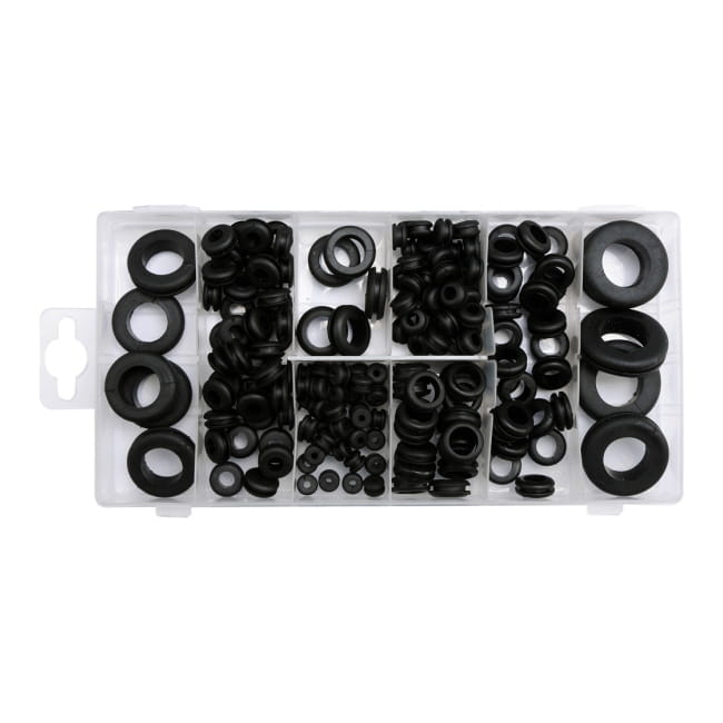 Chcesz wyposażyć garaż w praktyczne akcesoria warsztatowe? Podczas majsterkowania przy samochodzie z pewnością przyda Ci się proponowany zestaw przelotek stosowanych podczas montowania części. Gumowe elementy przez długi czas zachowują nienaganny stan – są odporne na zniekształcenia. W zestawie znajdziesz 180 sztuk tego produktu.