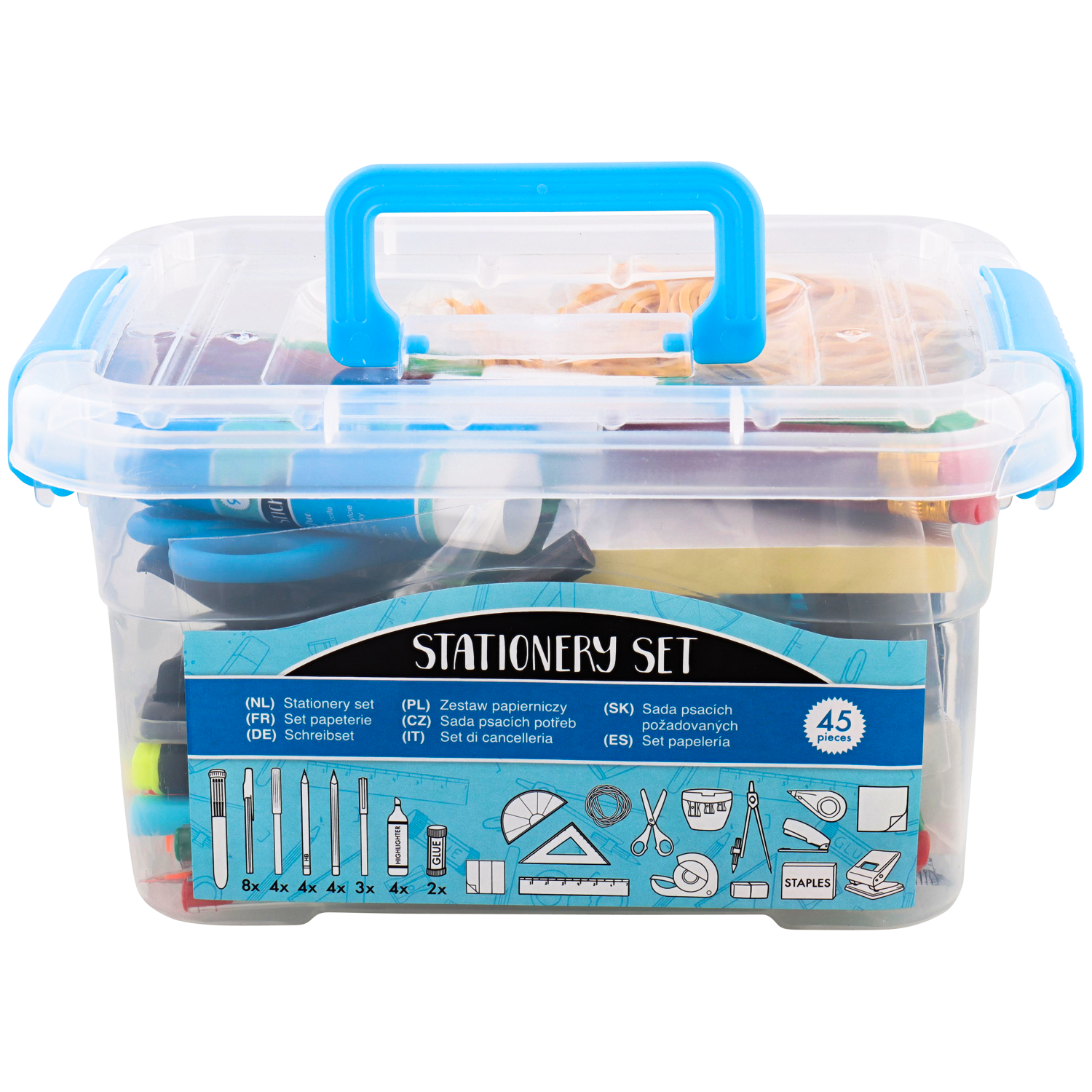 • M.in. ołówki, zakreślacze, klej, linijka, nożyczki, spinacze, taśma klejąca i wiele więcej!