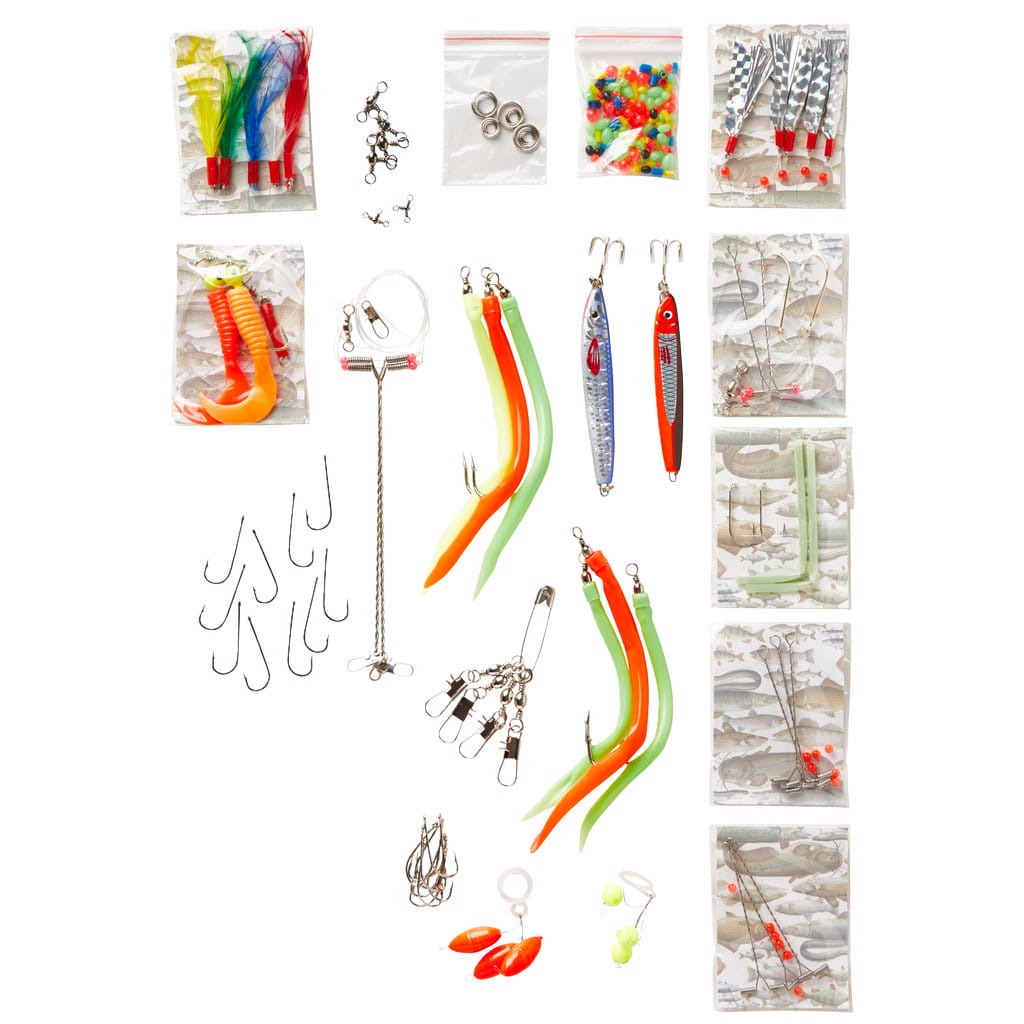 Pojemnik marki Kayoba ma dziewięć oddzielnych komór zawierających szeroki wybór wzajemnie uzupełniających się produktów dostosowanych do wędkarstwa morskiego. Pojemnik mieści wszystko, czego potrzebujesz do łowienia ryb takich jak dorsz, makrela, śledź i inne popularne ryby morskie. W zestawie wędkarskim znajdują się: