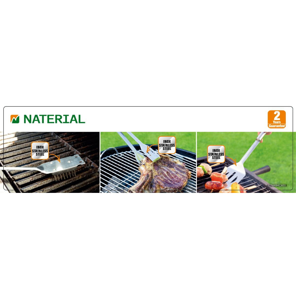 Zestaw sztućców do grilla szczypce+łopatka+szczotka Naterial